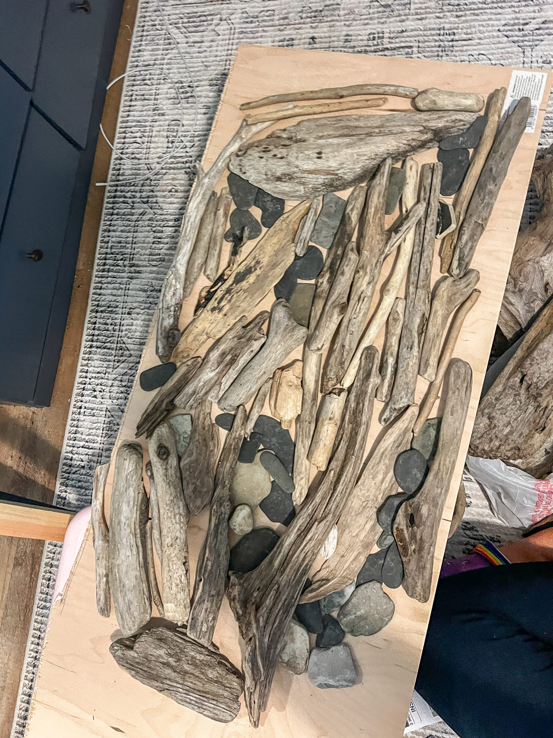 I made sure to put the small stones and pieces of driftwood aside, to use at the end as filler.