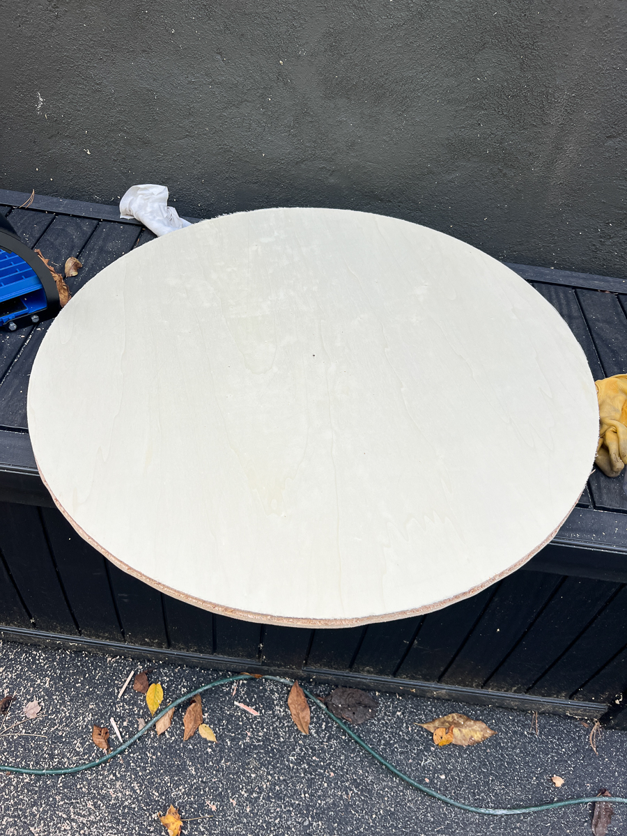 I search all summer and round tables around 32″ were scarce. They either had metal legs, not my style or too expensive. So I decided to DIY.
